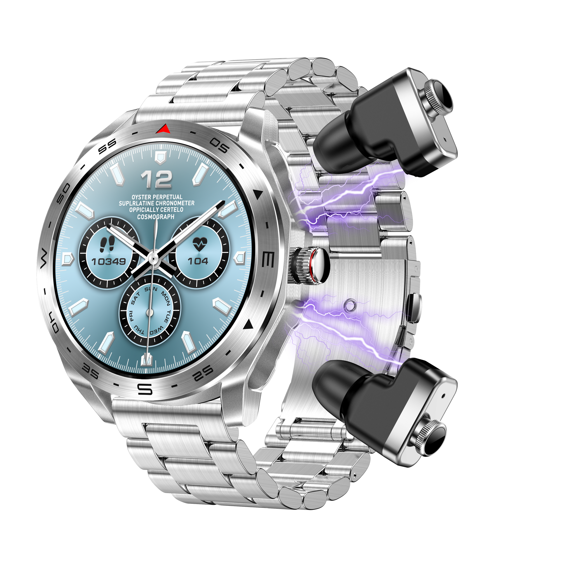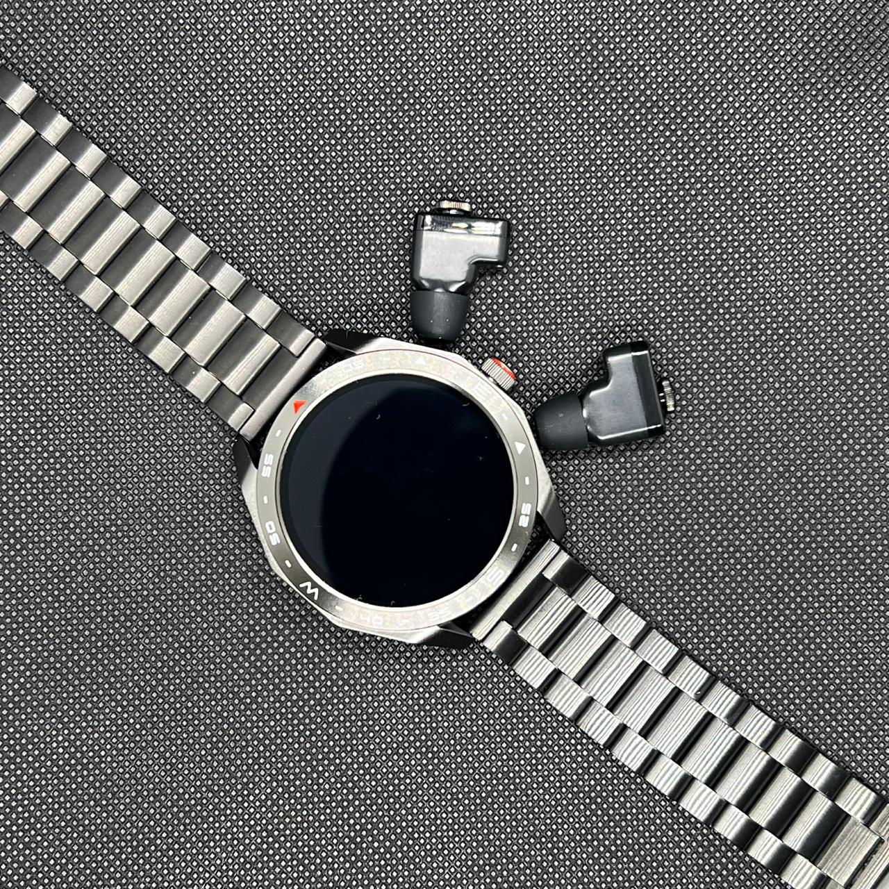 Um relógio inteligente que traz no pulso o que muita gente ainda leva no bolso: smartwatch + earbuds TWS no mesmo dispositivo. Design desportivo, acabamento premium e funções completas de saúde e chamadas.